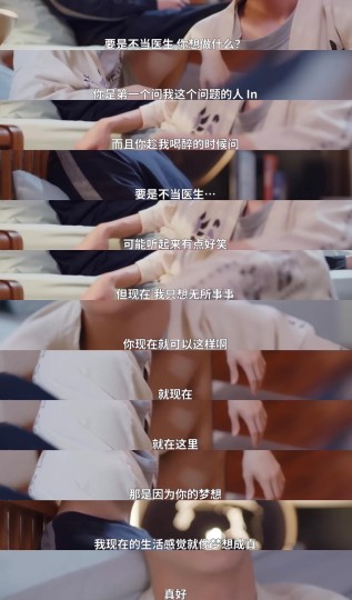 第四次递进在Thap醉酒后,In问了他「如果不做医生,最想做什么」..Thap笑笑说「你是第一个问我的人」.. 和许多被寄予厚望的长子一样,Thap的选择都像已经确定好答案的试卷,背负了许多,以至于好像真的没有想过,想做什么...但此刻,他想要闲着..In说「那你现在就可以这样..此刻..就在这里」意思是「在这里,你可以做你自己」