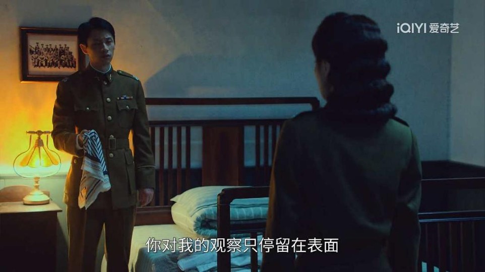 然而,聂曦似乎有种“钢铁直男式”免疫力:黎晴借口害怕求下班护送,他全程保持礼貌而明确的同事距离;黎晴借收音机搭话试图寻找共同话题,他回以“耳听为虚”,反向试探对方是否真的一无所闻;黎晴在宿舍撩起裙摆为伤口上药,他直接一个转身出门,恪守“非礼勿视”的君子之道;直到黎晴拿着他晒过的床单,表示知道他有老婆,但帮他不止是为报答救命之恩,聂曦反手就掏出一条女士丝巾,直接亮明“有妇之夫”且夫妻恩爱的身份牌,彻底终结话题。